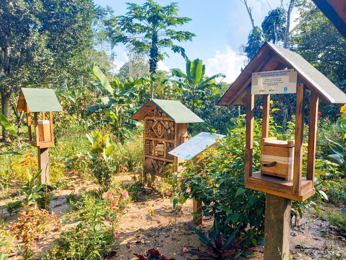 One of our most successful endeavors is the rescue and protection of the Melipona Bee – a stingless native bee from the Amazon.